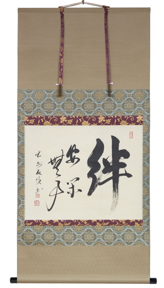 ・Hanging scroll (kakejiku 掛軸) with calligraphic Zen saying (ji 字), artist’s signature and seals (in 印)